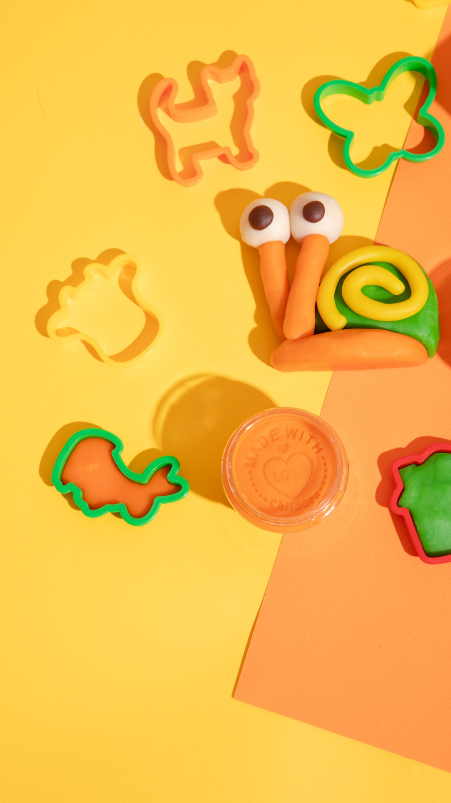 - 3 colors of playdough (orange, yellow, and green) made from natural ingredients,