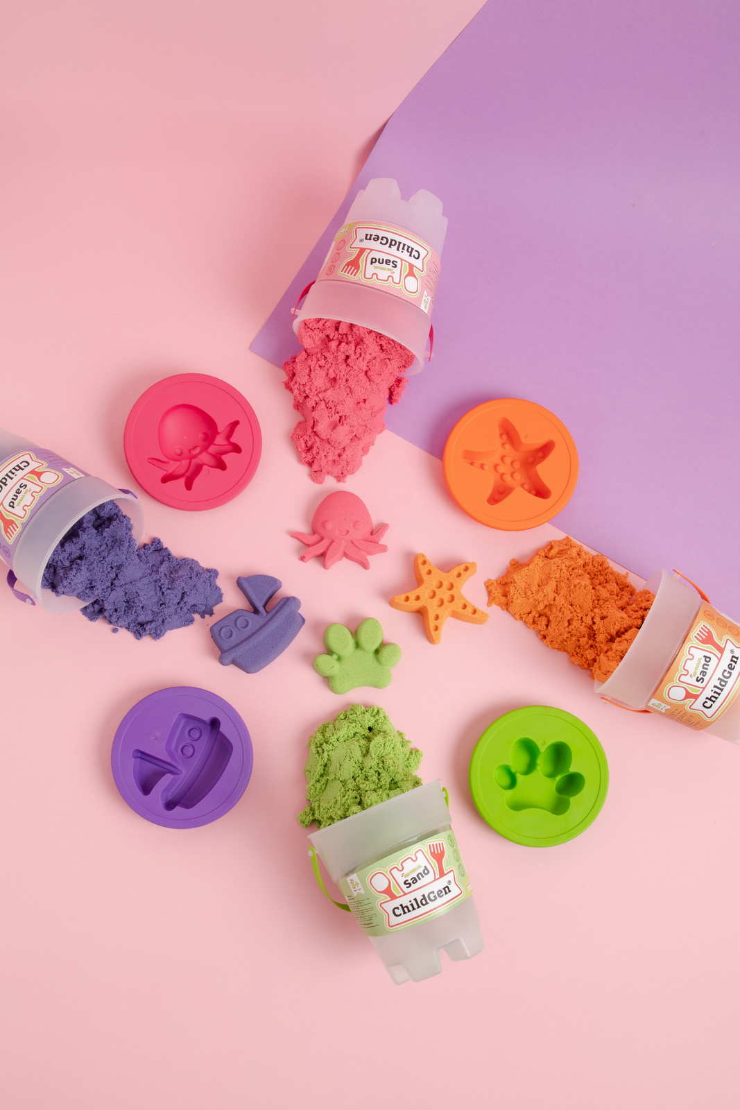 Unleash the magic of creative play with ChildGen natural kinetic sand, designed to nurture children's imagination and motor skills! Made from natural ingredients, scented, and safe – perfect for kids and adults alike who are seeking a moment of relaxation and calm. Soft, easy to mold, and perfect for squeezing, squashing, and touching, it provides a delightful sensory experience.