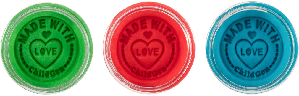 - Set contains 3 pieces of play dough consisting of 125 grams