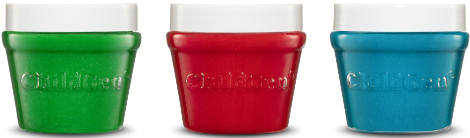 Each jar, embossed with the ChildGen logo, is sealed for freshness and features a lid message: "make with love - ChildGen." This stylish and practical set can be refilled with eco-friendly playdough packs, making it a perfect gift!