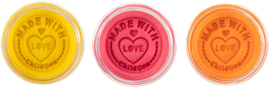 Each jar, embossed with the ChildGen logo, is sealed for freshness and features a lid message: "make with love - ChildGen." This stylish and practical set can be refilled with eco-friendly playdough packs, making it a perfect gift!