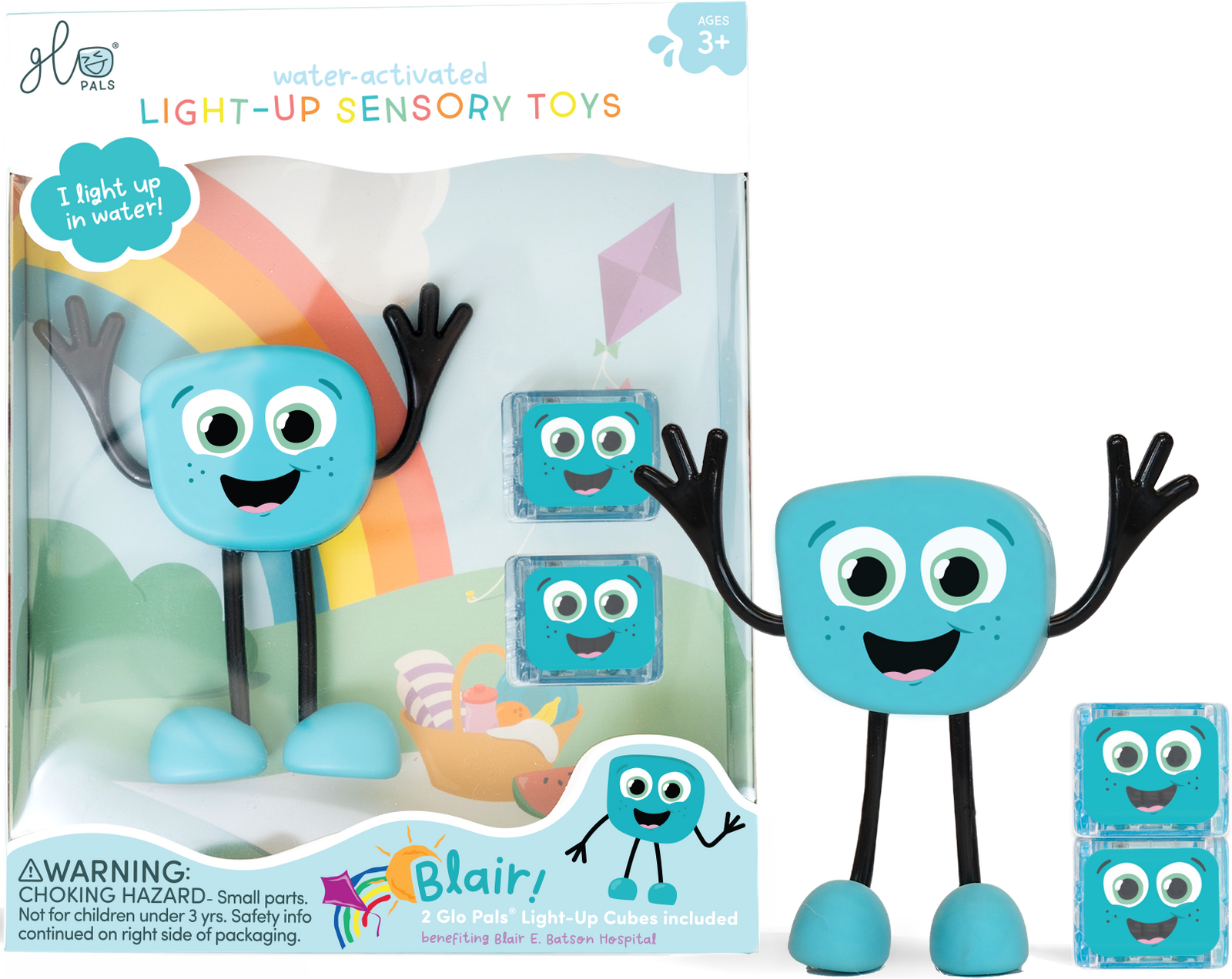 Glo Pals, Set with Blair Character and 2 Light-Up Sensory Cubes in Turquoise