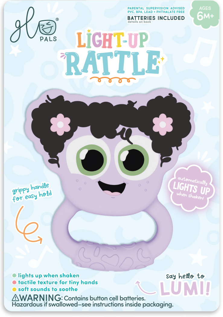 Glo Pals, rattle–teether glowing in the dark, motion-activated – Lumi purple