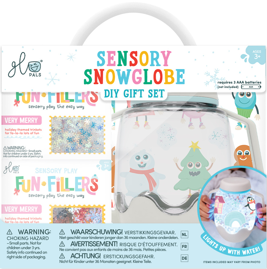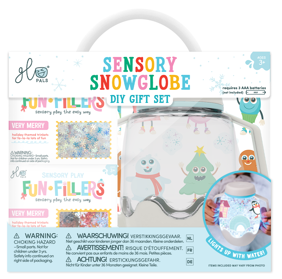 Bring a little extra sparkle to holiday play with our ready-to-gift set! This set has everything your little maker needs to create their very own magical snowglobe. Just add tap water and Fun Fillers, then decorate with the reusable Winter Wonder Clings to make it one-of-a-kind. Perfect for cozy holiday afternoons, sensory play, and more.