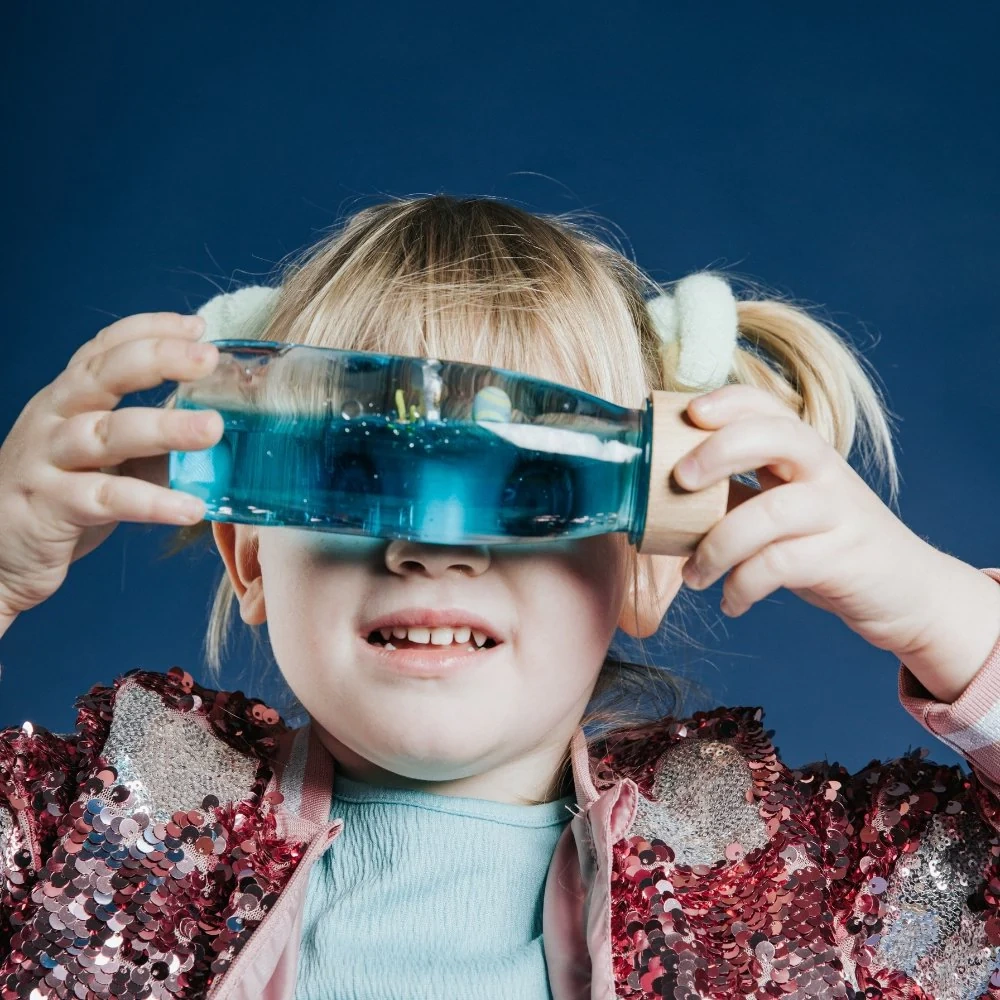 The MOVE collection by Petit Boum features magical sensory bottles that will captivate everyone! Filled with an innovative dual-phase liquid, they create a mesmerizing floating effect that draws children into a world of imagination. The built-in magnifying effect allows for close observation of liquid density changes and hidden elements.