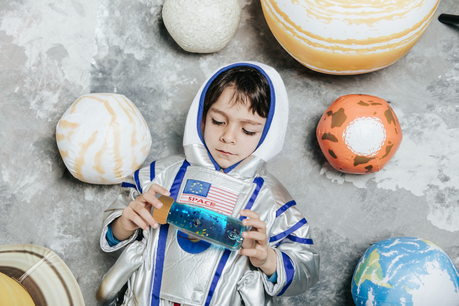 The MOVE bottles invite children to immerse themselves in a world of dreams and colors. Shake the bottle and embark on an interstellar journey! A brave astronaut floats through space, surrounded by twinkling stars. Can you see how small our planet looks from this perspective? Discover cosmic secrets and let your imagination soar into infinity with MOVE bottles!