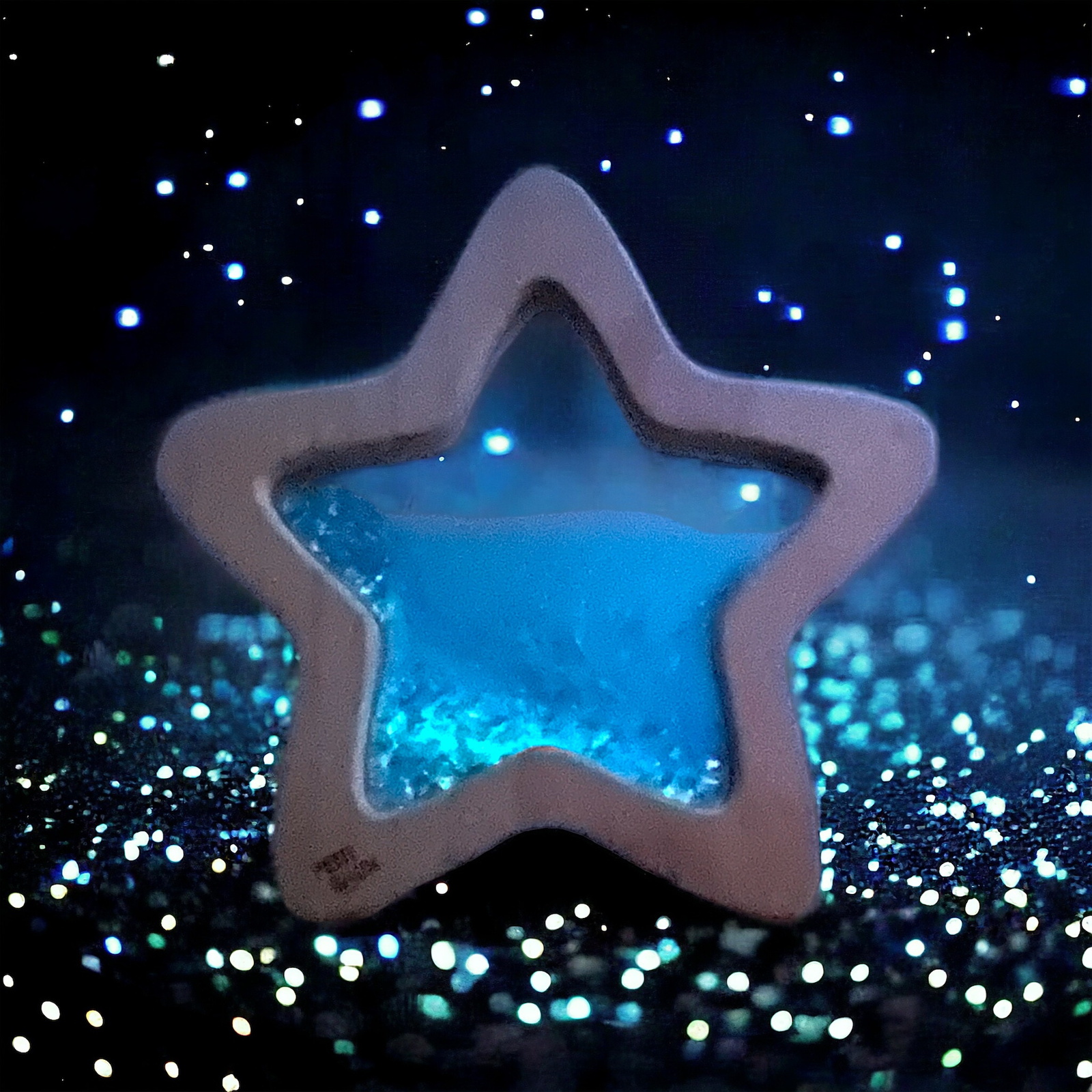 This exceptionally large, 19 cm star is handmade in Spain. It is carefully finished with polished wood, which not only enhances the product's aesthetic appeal and durability but also makes it incredibly pleasant to the touch. The Flow Star is a beautiful blend of glitter and fluorescent sand that sparkles when exposed to light. Try shining a light on the star, and you'll discover previously hidden fluorescent stars swirling in the glittery liquid. It's definitely a "WOW" effect that will amaze both children and parents!