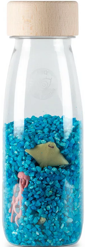 Petit Boum sensory bottles are a colorful world contained in a small, child-friendly form. They entertain, educate, and stimulate the imagination! Let your child move, shake, and manipulate the bottle to discover the hidden animals living in the ocean.