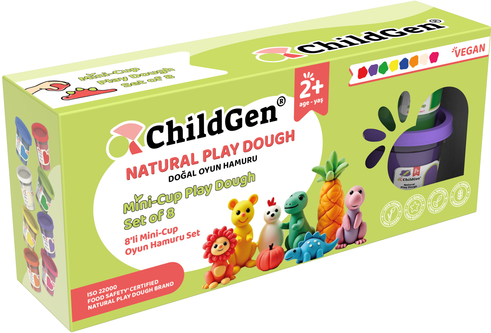 ChildGen, 100% naturalna ciastolina zestaw eco kubków (8 szt.) wegańska, certyfikowana, 2y+