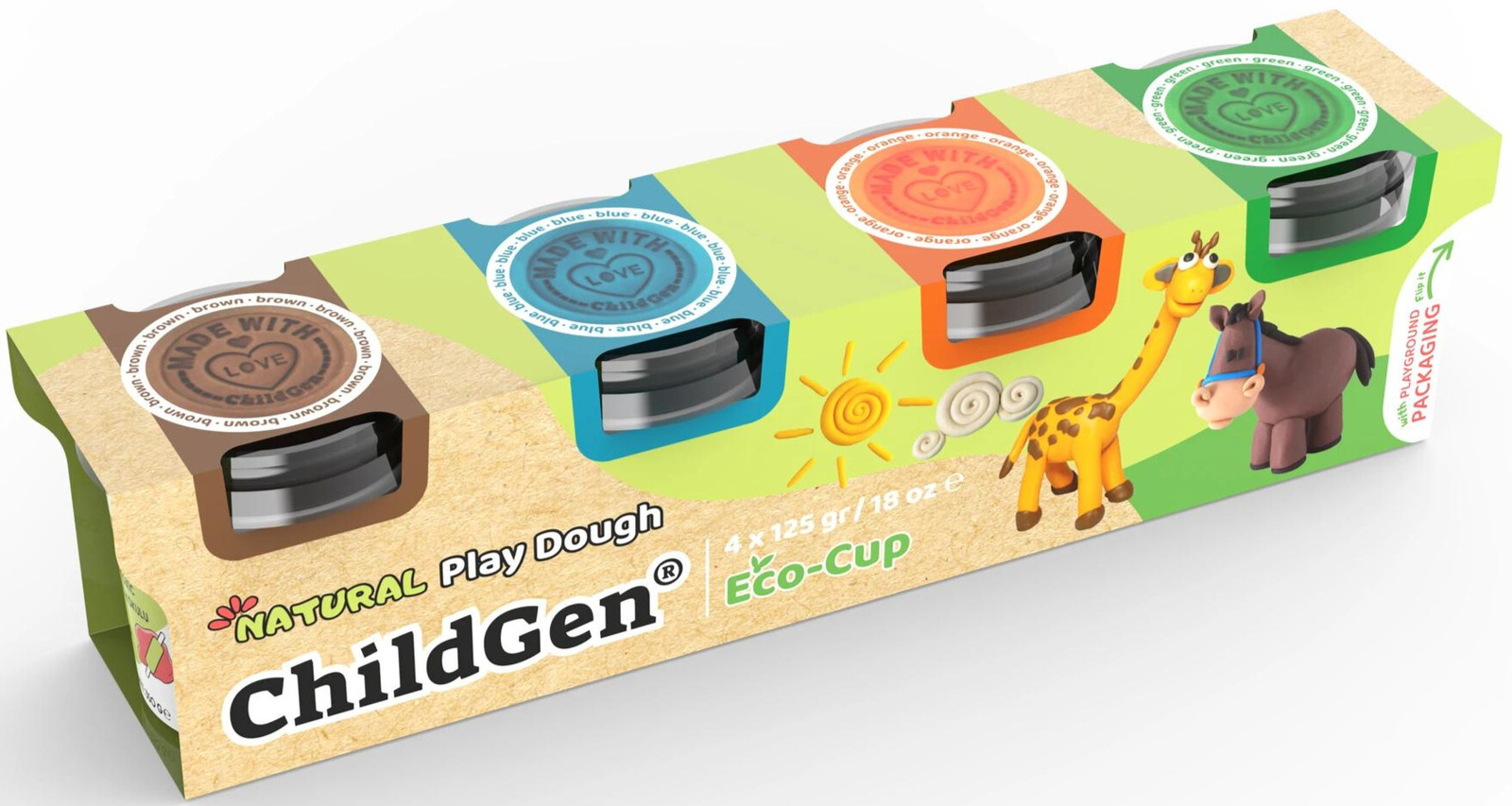 ChildGen, Naturalna ciastolina w eko-kubkach - zestaw 4 kolorów: brązowy, niebieski, pomarańczowy, zielony