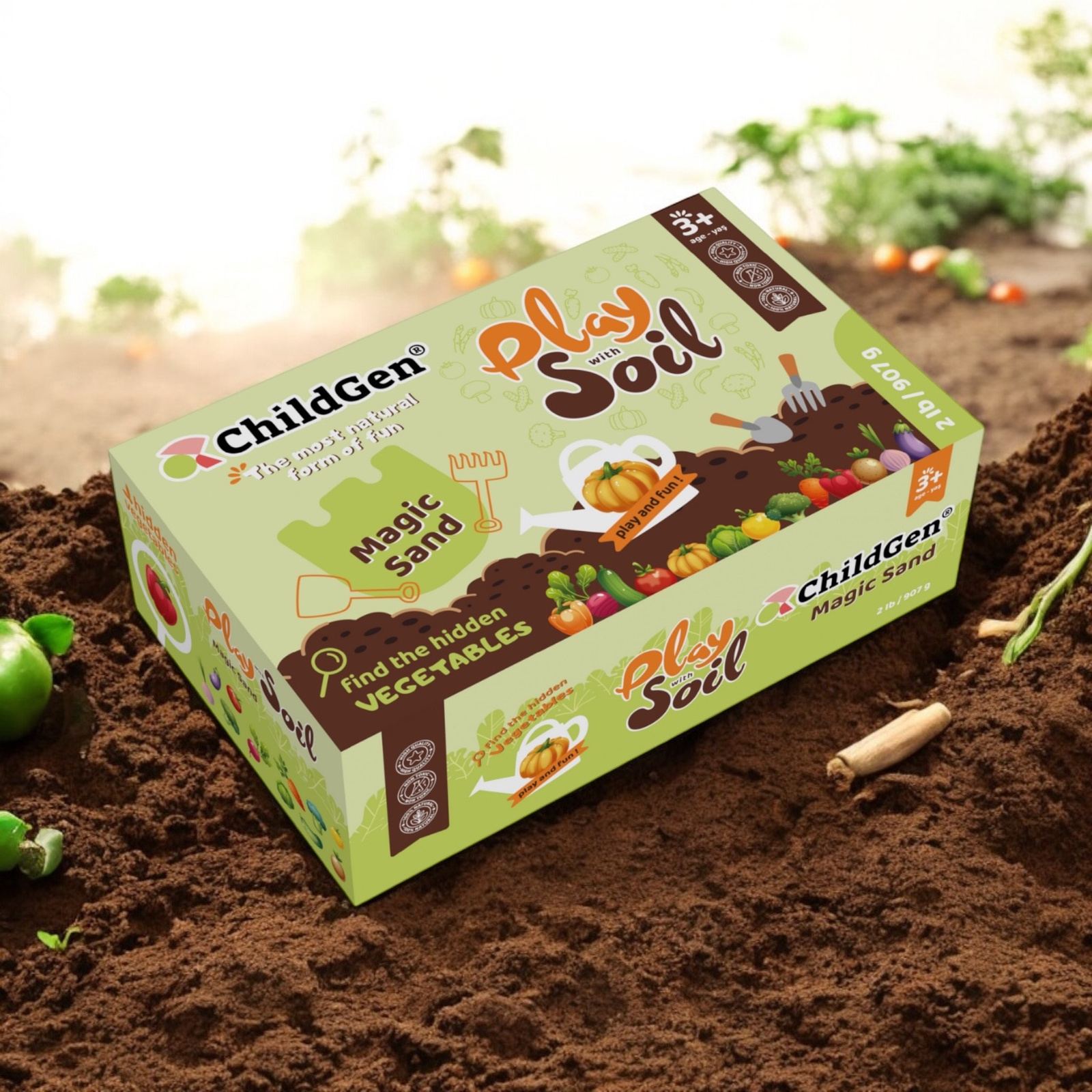 ChildGen, Piasek kinetyczny Mały ogrodnik, gleba z warzywami 100% naturalny, 907g w pojemniku