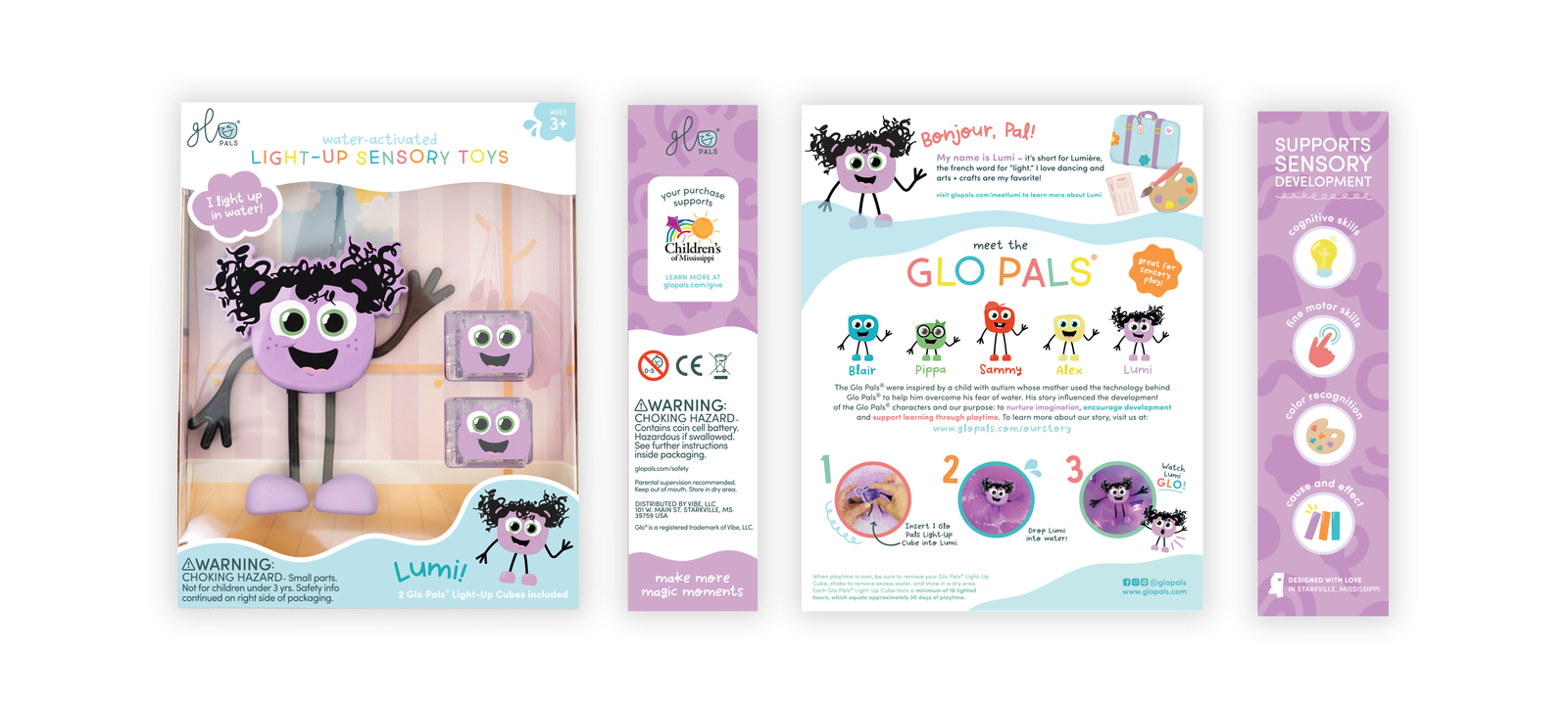 Glo Pals to amerykańska marka produktów do stymulacji sensorycznej podczas zabawy w wodzie lub wodą. Inspiracją do stworzenia produktów Glo Pals była historia autystycznego chłopca, który bał się kąpieli. Świecące produkty Glo Pals pomogły mu przezwyciężyć strach przed wodą.