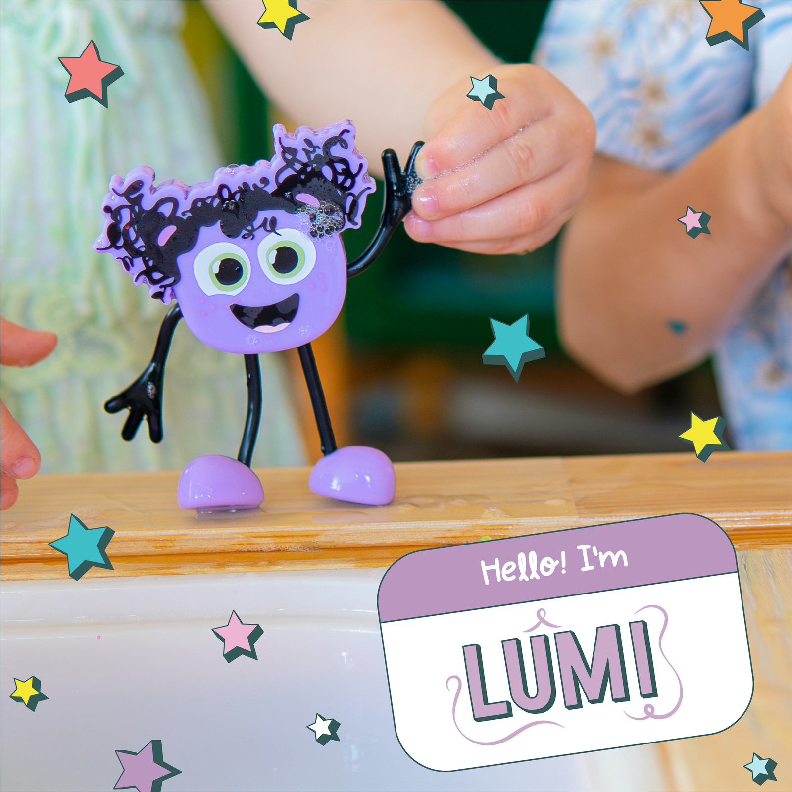 Glo Pals, Postać do kąpieli Lumi - zestaw z dwiema kostkami sensorycznymi świecącymi w wodzie