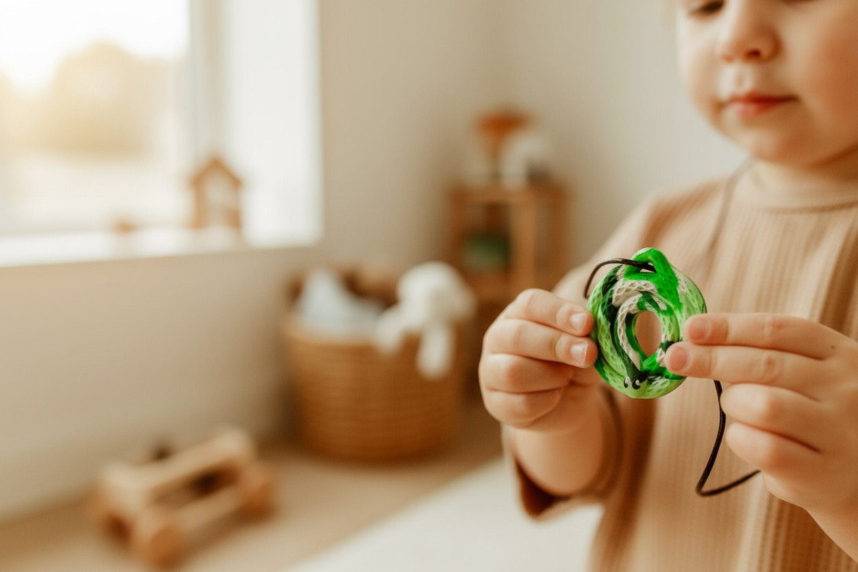 Wykonany z najwyższej jakości silikonu spożywczego, naszyjnik jest w 100% bezpieczny, wolny od BPA i innych szkodliwych substancji. Doskonale sprawdza się jako narzędzie wspierające koncentrację, samoregulację emocji oraz samouspokajanie się w sytuacjach stresowych.