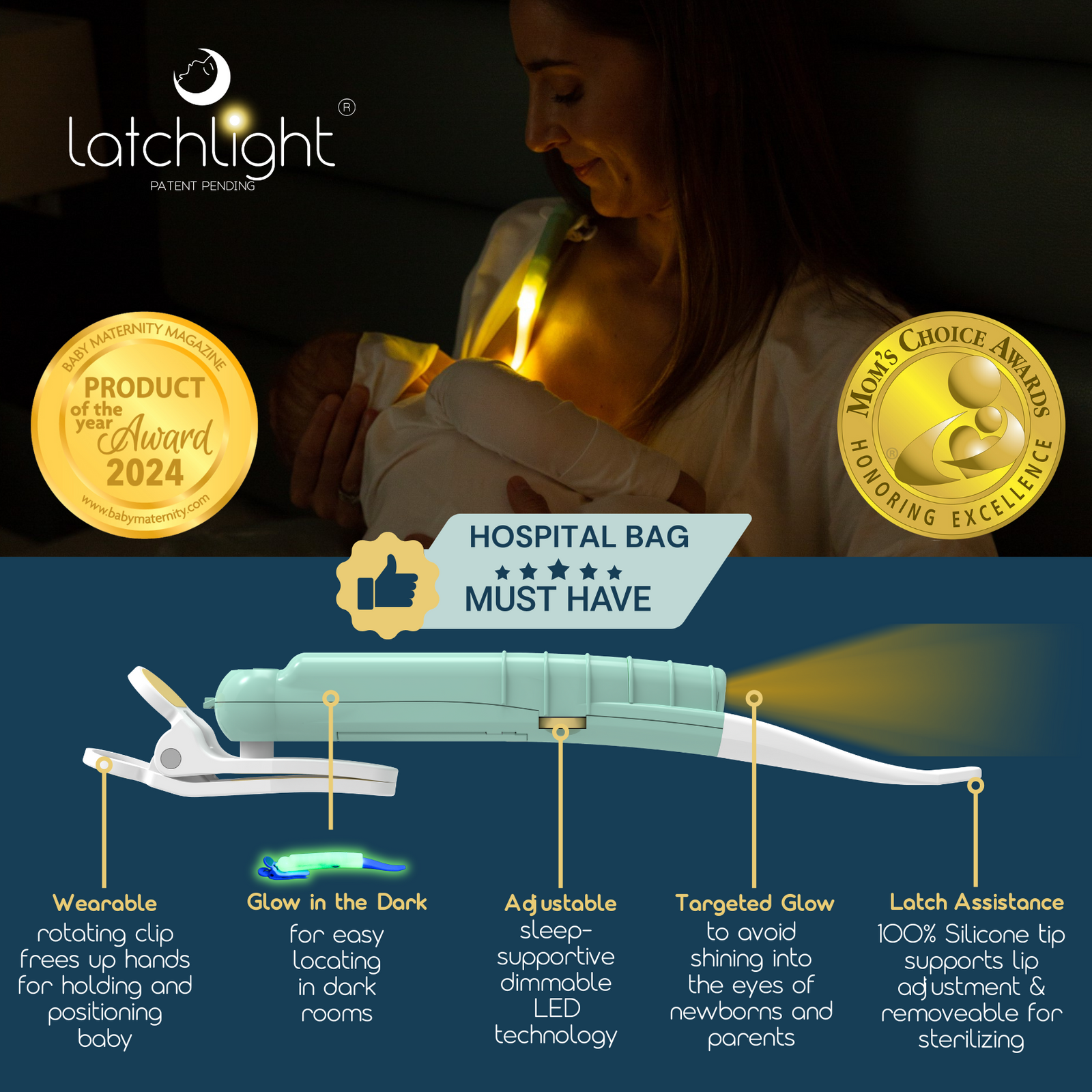 LatchLight to innowacyjna, przenośna lampka LED zaprojektowana specjalnie dla rodziców małych dzieci. Ta opatentowana technologia zmieniła zasady gry w nocnej opiece nad maluchem! Dzięki precyzyjnie skupionemu światłu ułatwia nocne karmienie, przewijanie i opiekę nad maluszkiem, nie budząc przy tym domowników.