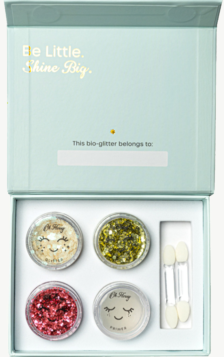 Oh Flossy, Brokatowy zestaw do malowania twarzy SPARKLY, bio brokat, roślinna formuła
