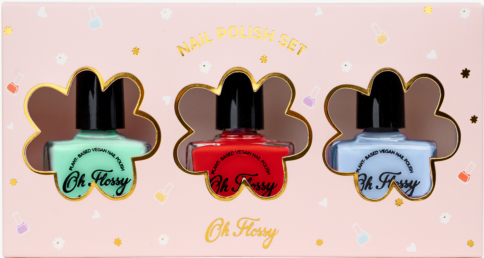 - Oh Flossy to bezpieczne lakiery do paznokci dla dzieci, stworzone na bazie roślin i wyprodukowane w Australii. Dzięki szybkoschnącej formule, maluchy mogą cieszyć się kolorową zabawą, a potem szybko wrócić do odkrywania świata!