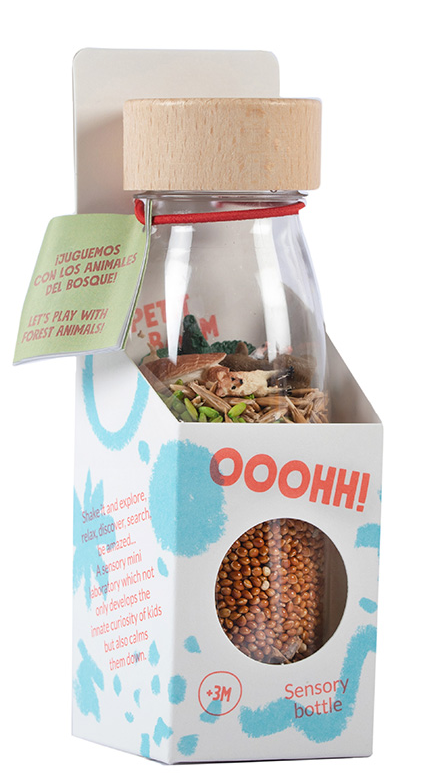 Butelki sensoryczne od Petit Boum to kolorowy świat zamknięty w niewielkiej, przystępnej dla dziecka formie. Bawią, uczą i stymulują wyobraźnię! Pozwól swojemu dziecku poruszać, potrząsać i manipulować butelką, aby odnaleźć ukryte zwierzątka zamieszkujące las. Czy uda Ci się znaleźć jeża?